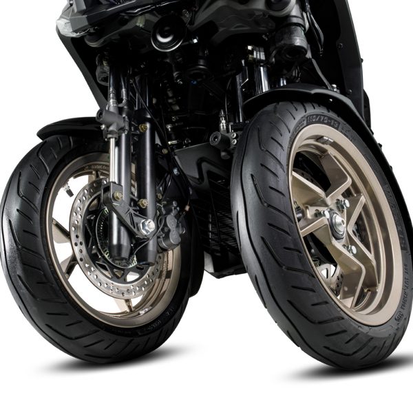 De motor van de CV3 is die van de AK550i en er is veel aan gedaan om de CV3 toch veel meer te laten zijn dan een AK550 met twee voorwielen. Die voorwielen zijn beide voorzien van een upside-down voorvork, waarbij het veersysteem tot 40 graden kan kantelen.