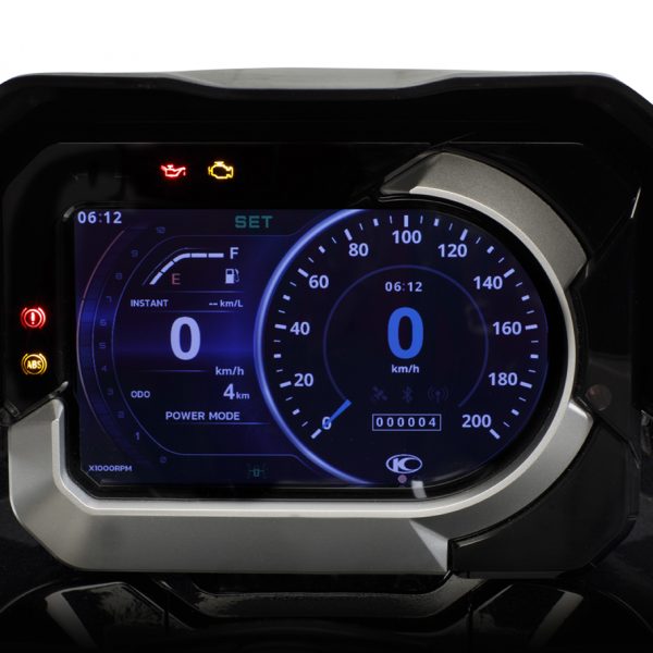 | Cockpit | 6 inch TFT Dashboard, abs lampje, Alarm lamp, benzinemeter, bluetooth verbindingslampje, digitaal tijdsklokje, digitale km teller, knipperlichten, lekke band sensor, mobiele data verbindingslampje, motor lampje, Noodoe navigatie systeem, olie service indicator, oliecontrole lampje, power/rain modus indicator, satelliet verbindingslampje, snelheidsmeter, temp sensor, toerenteller, totaal afstand, verlichting |